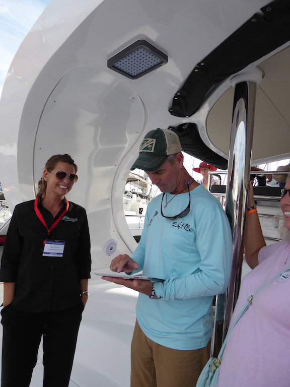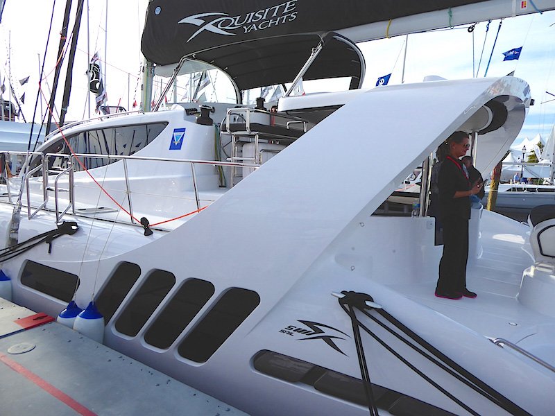 I knew this would be an amusing show when I quickly deduced that this unlikely looking vessel, the new Exquisite X5 catamaran from South Africa, would likely prove one of the more interesting vessels on site. Yes, yes. I know what you’re thinking.