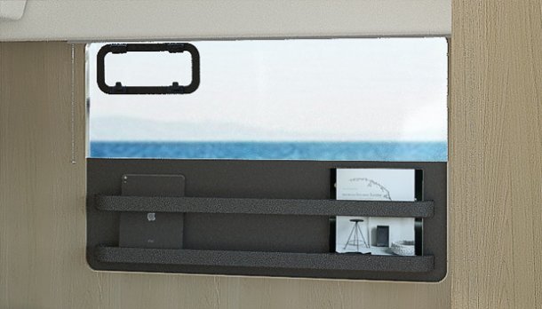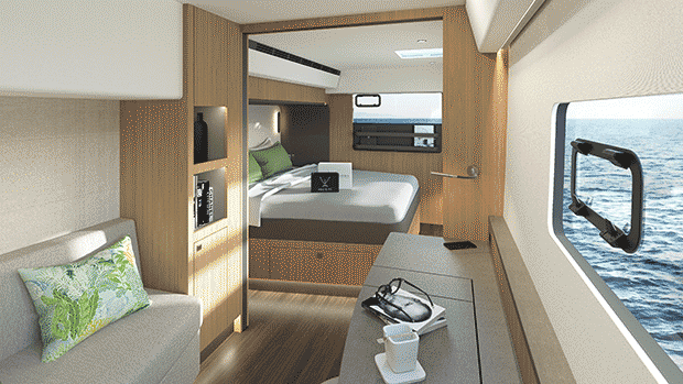 - Larger 19″ display at the helm in lieu of 16″, and additional 9″ display at inside nav station