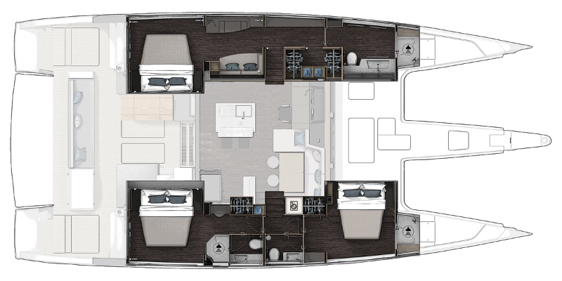 A look inside the full-beam master suite, VIP cabin, and guest accommodations.