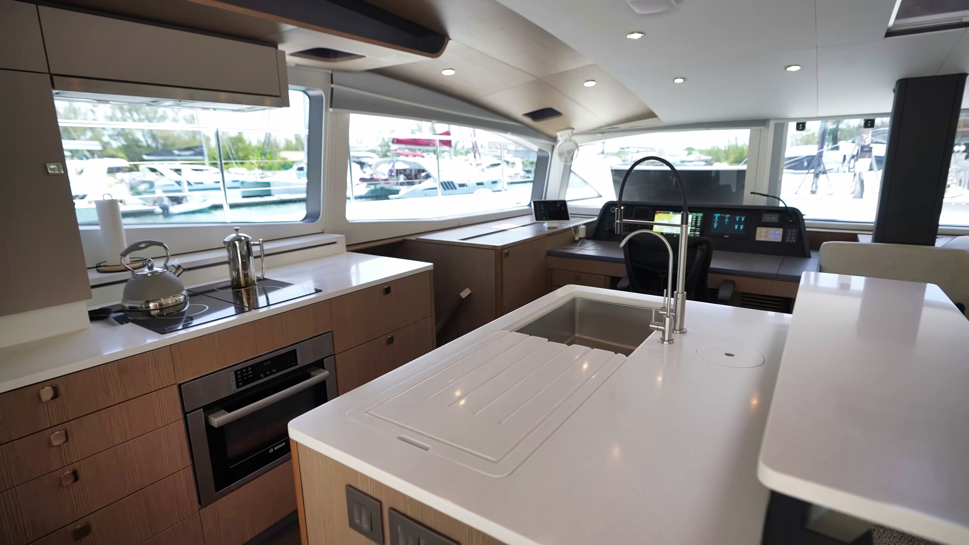 Walkthrough of the galley, main salon, and the advanced lower helm station.