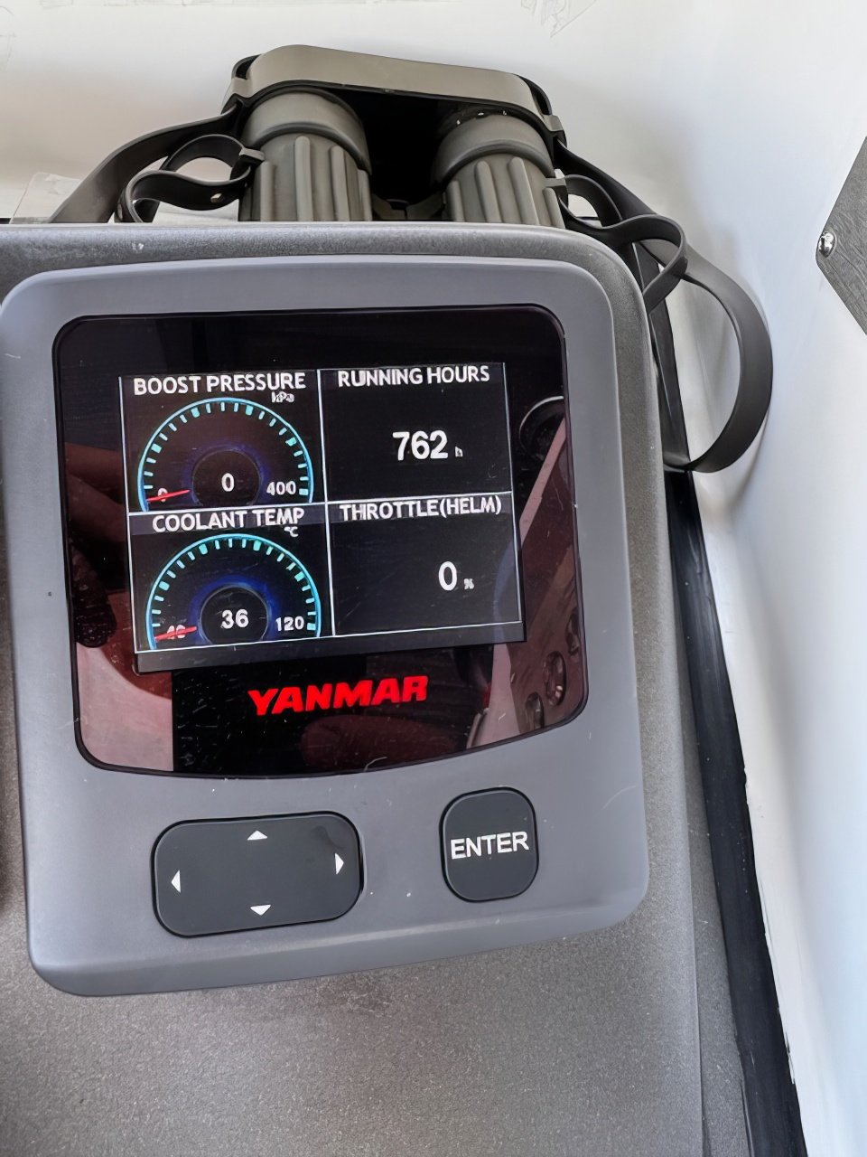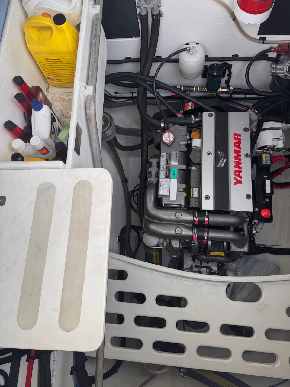 Two x Yanmar Marine diesel engines Model 4JH80-TE (80HP at 3200RPM) with SD60-T sail drive units, both freshwater cooled, Stbd side coupled via the heat exchanger to a 60L Calorifier for hot water.