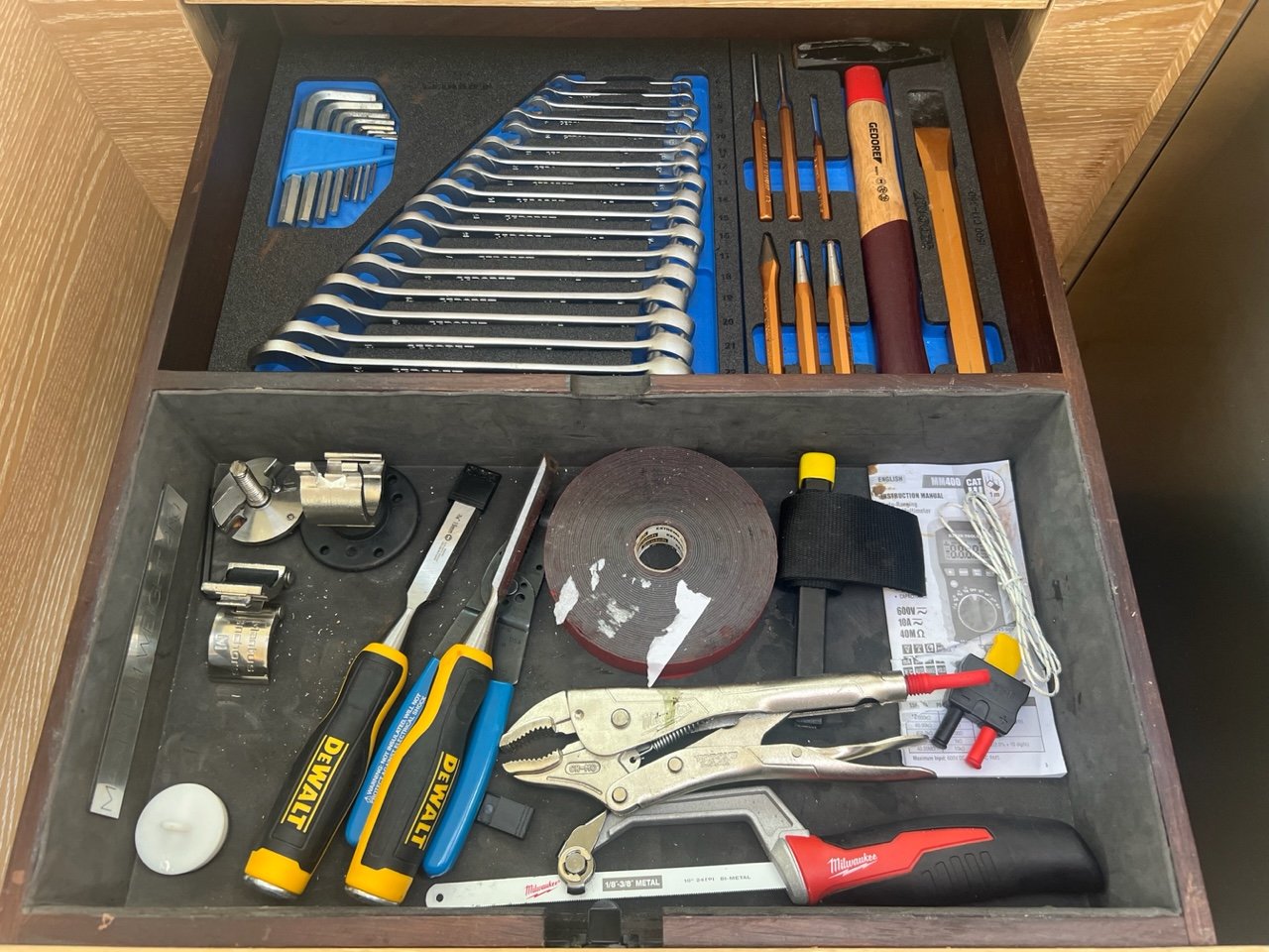 Emergency tiller arm supplied on dedicated brackets in stbd engine room.
