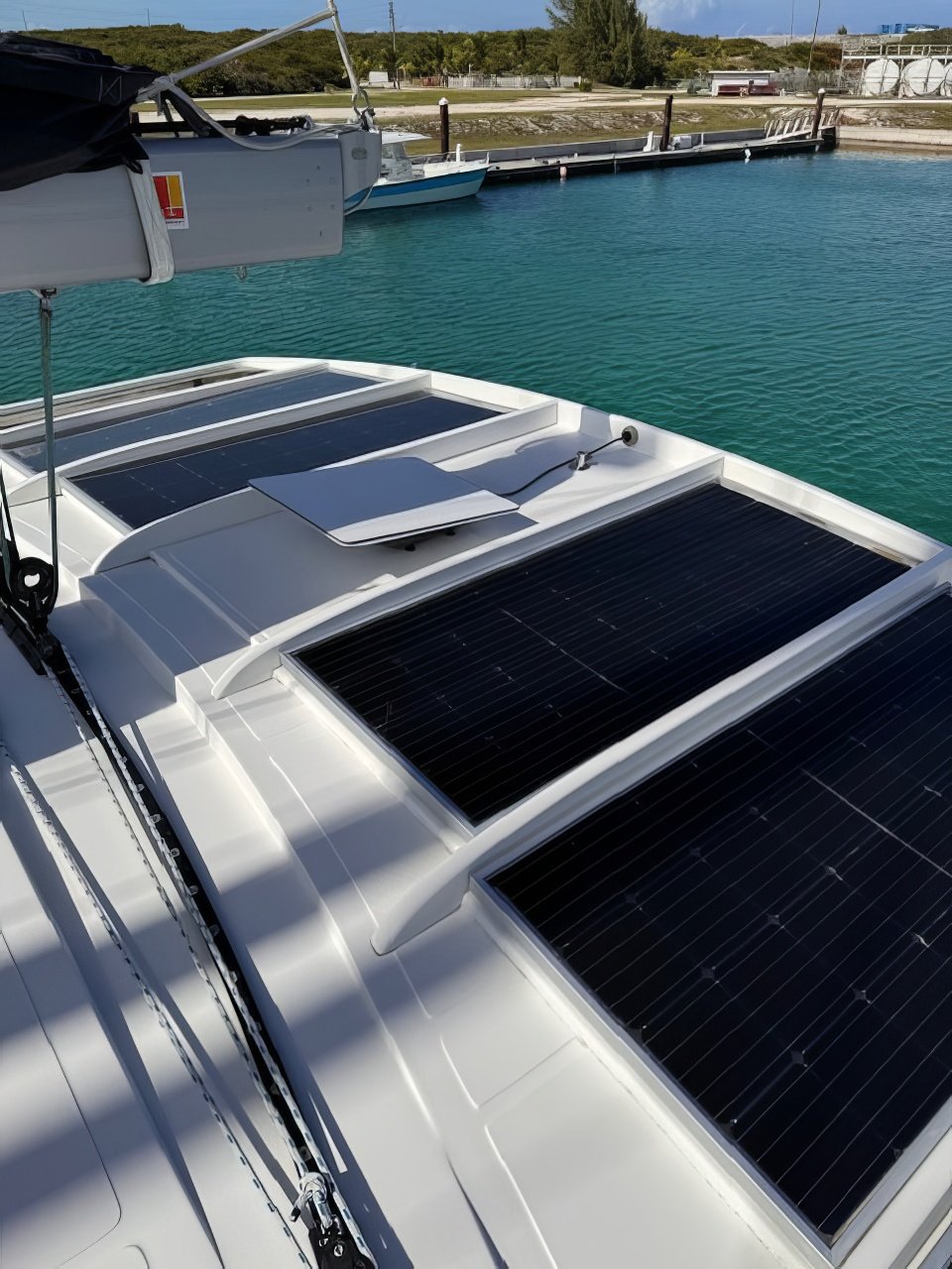 Solar panels – 6 x 150 Watt on saloon coachroof with 1 x 60 Amp Mastervolt MPPT solar regulator