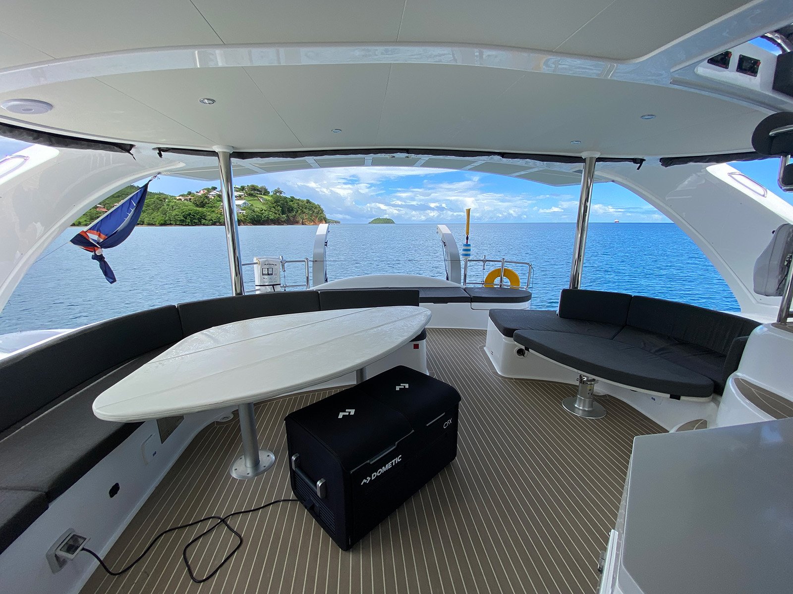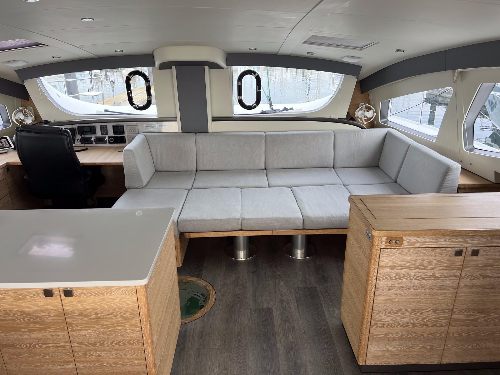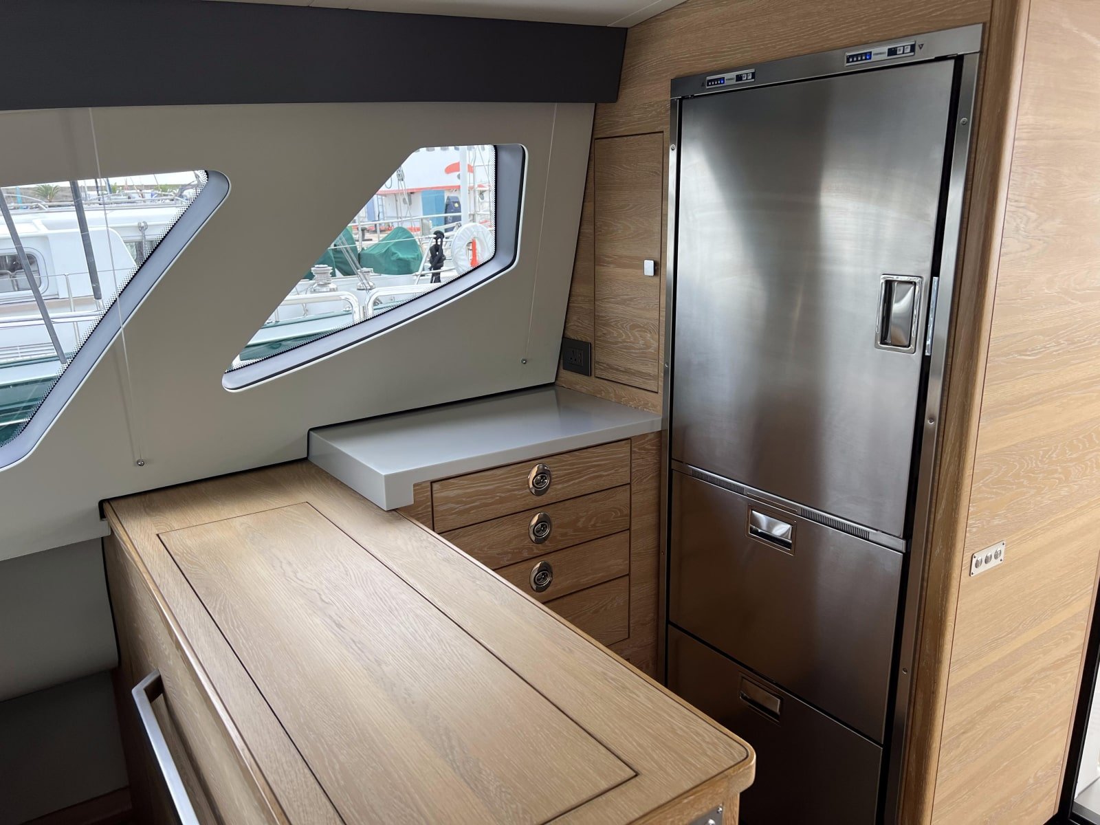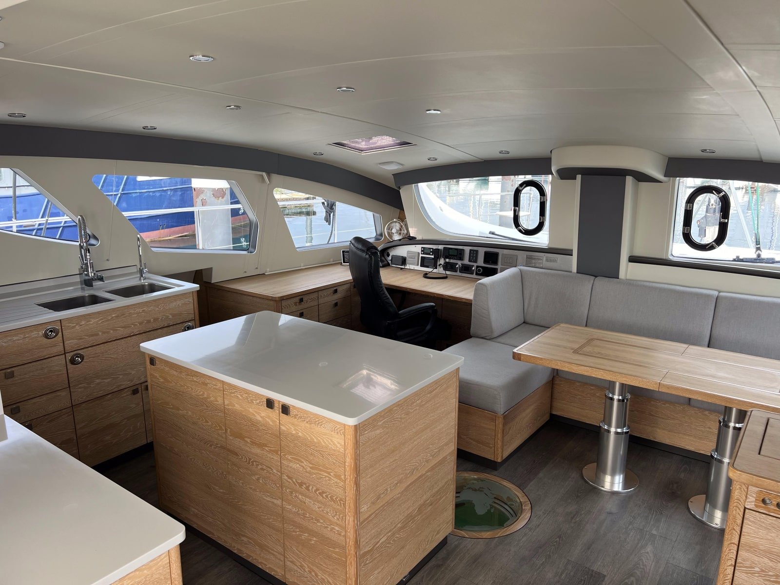 | Wet bar in cockpit incorporating solid surfacing counter top with under mounted GRP sink and mixer tap | |
