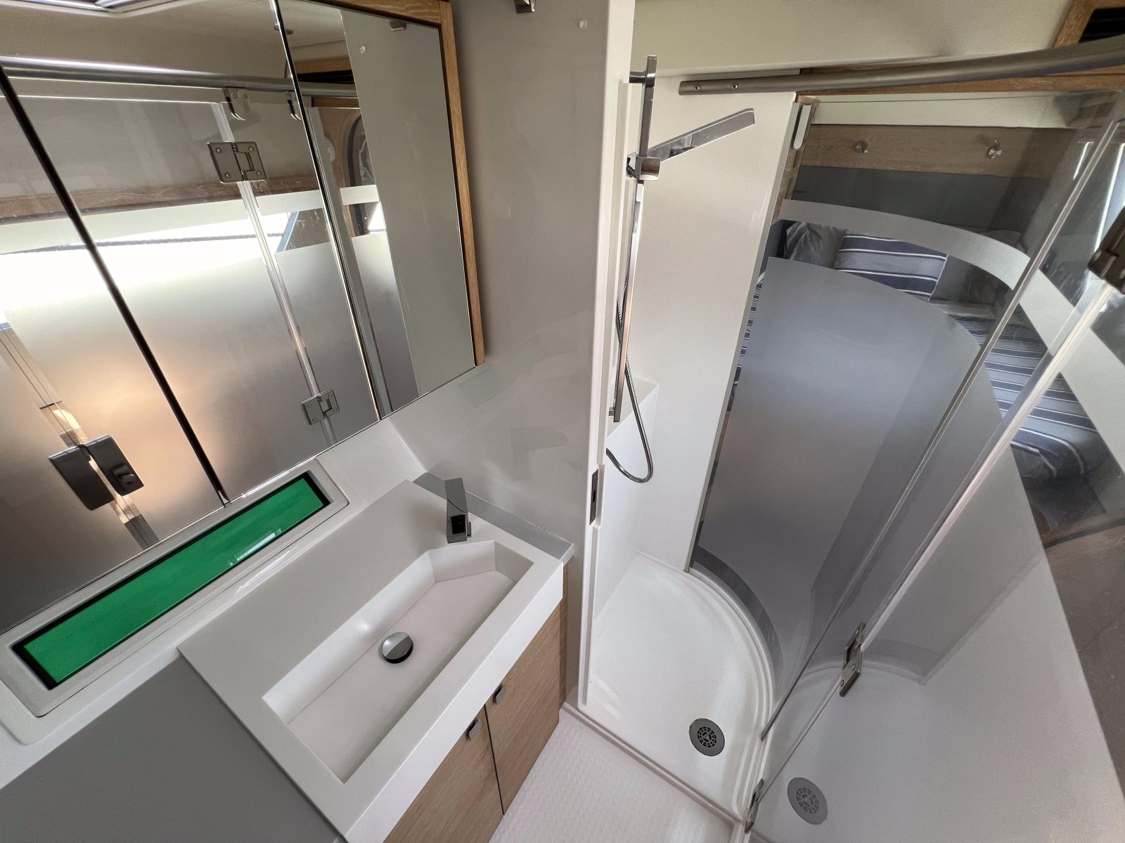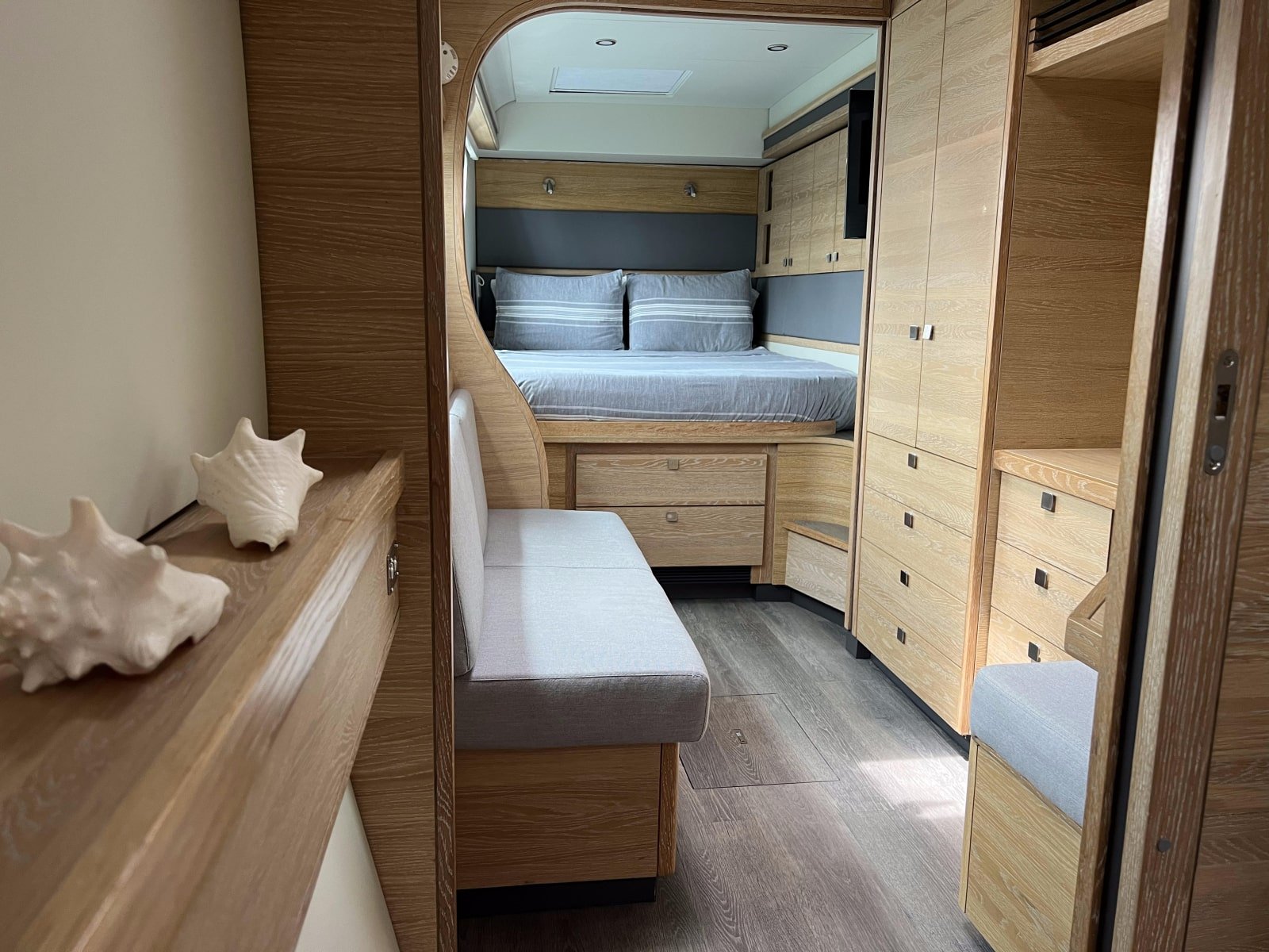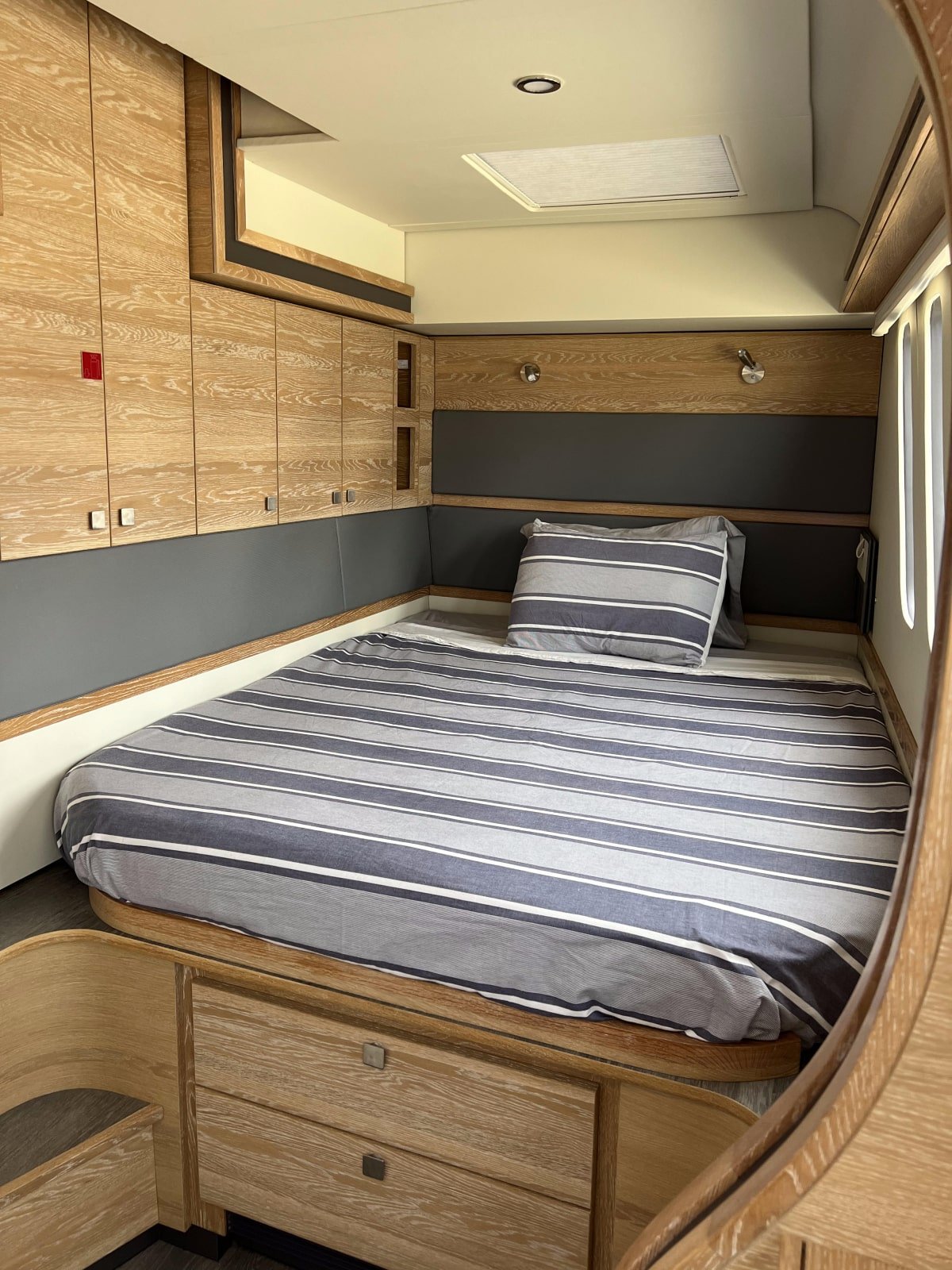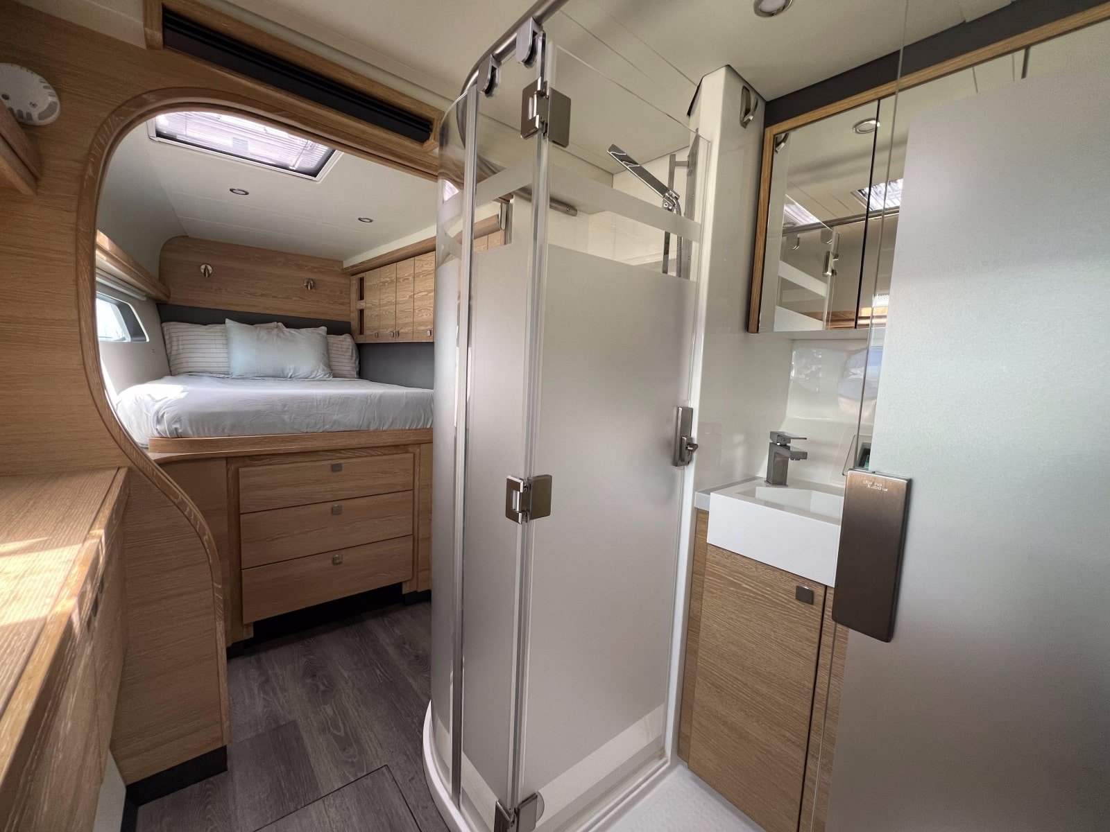 | Two recessed water tank fillers fitted on coachroof so as to act as rain water collection points | |