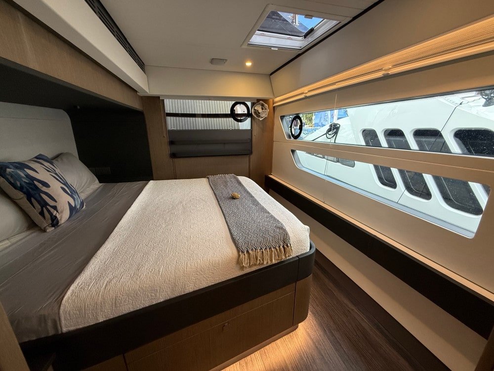 - Large deck hatches, all-electric cooking, and wireless phone charging for innovative comfort.