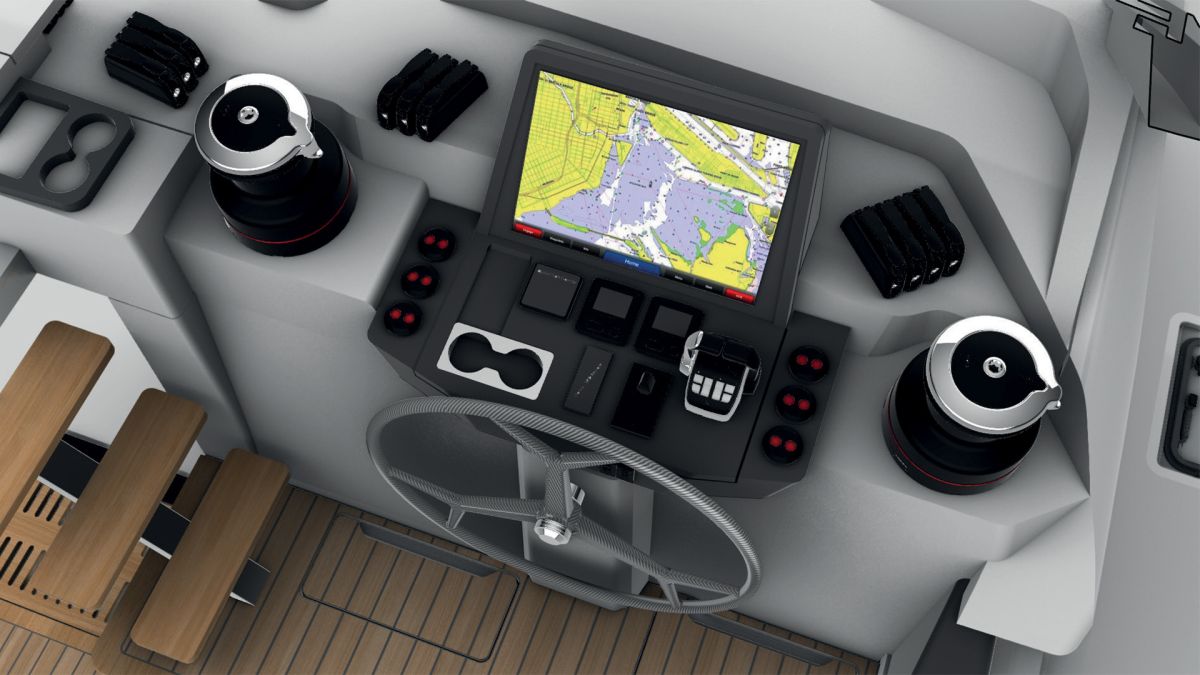 With features like all-electric sail controls from the protected helm station, this yacht is engineered for sailors who value ease and efficiency. The cat also includes a carbon fiber boom furling mainsail and electric traveler, making single-handed sailing a breeze.