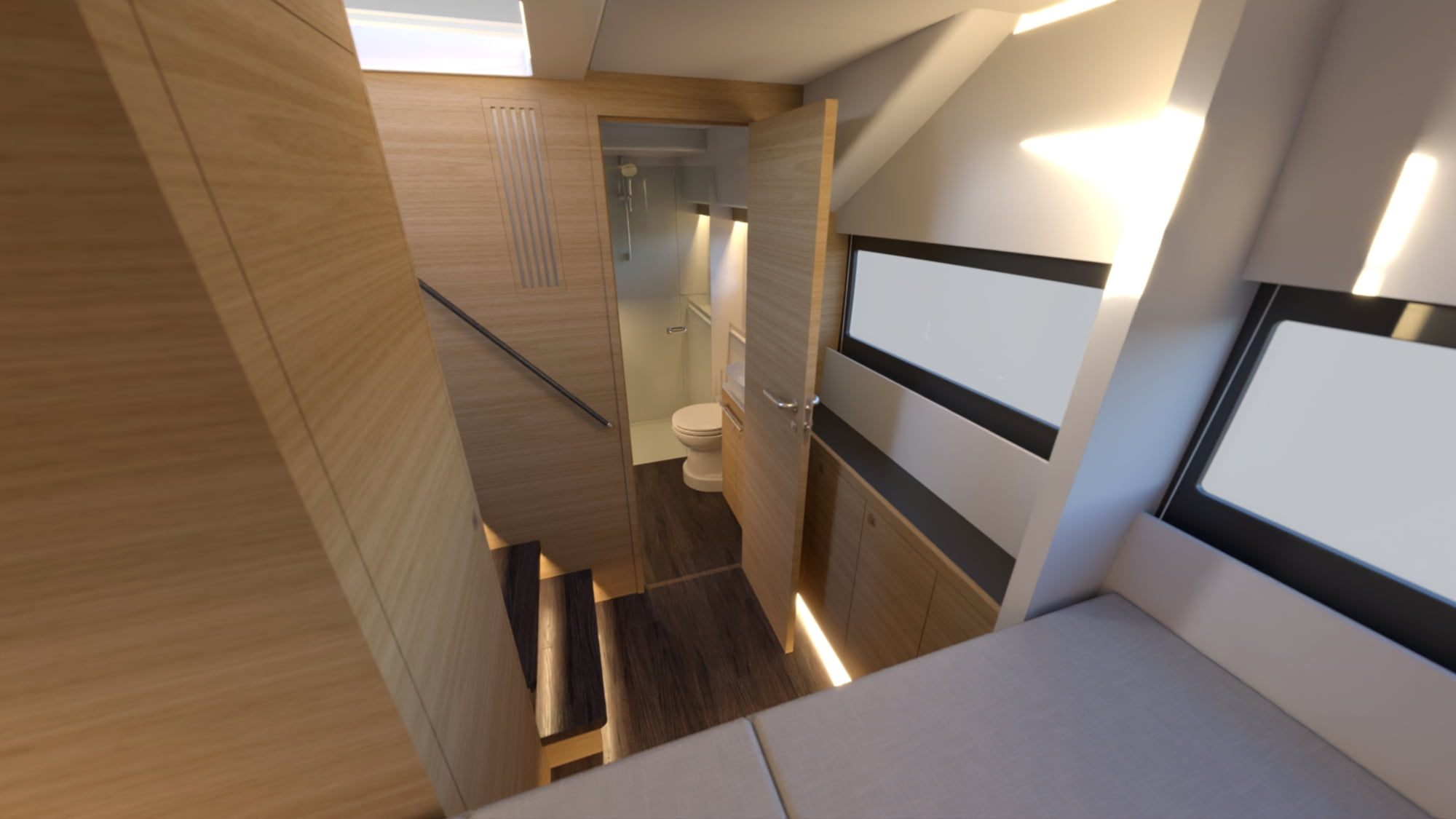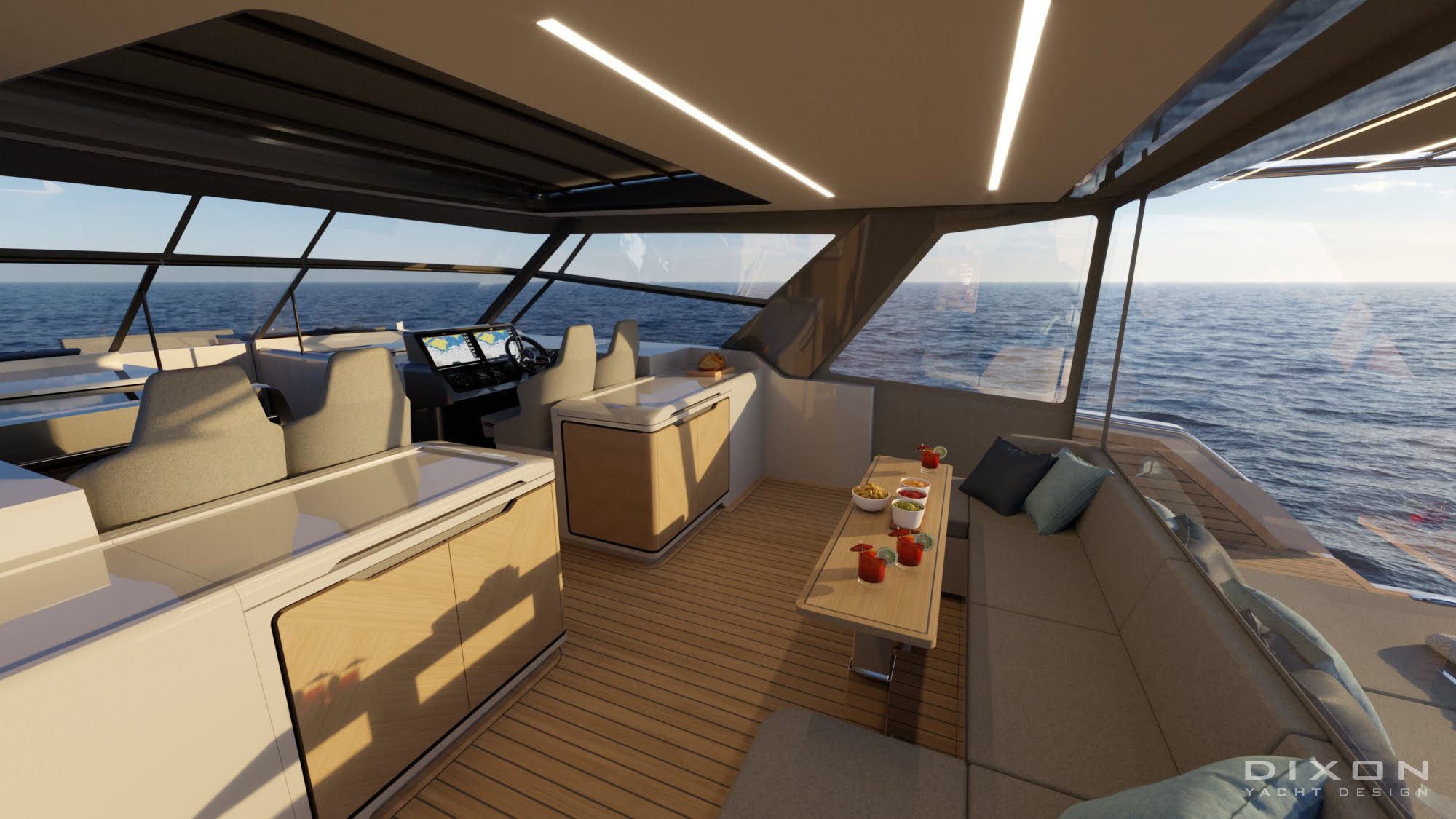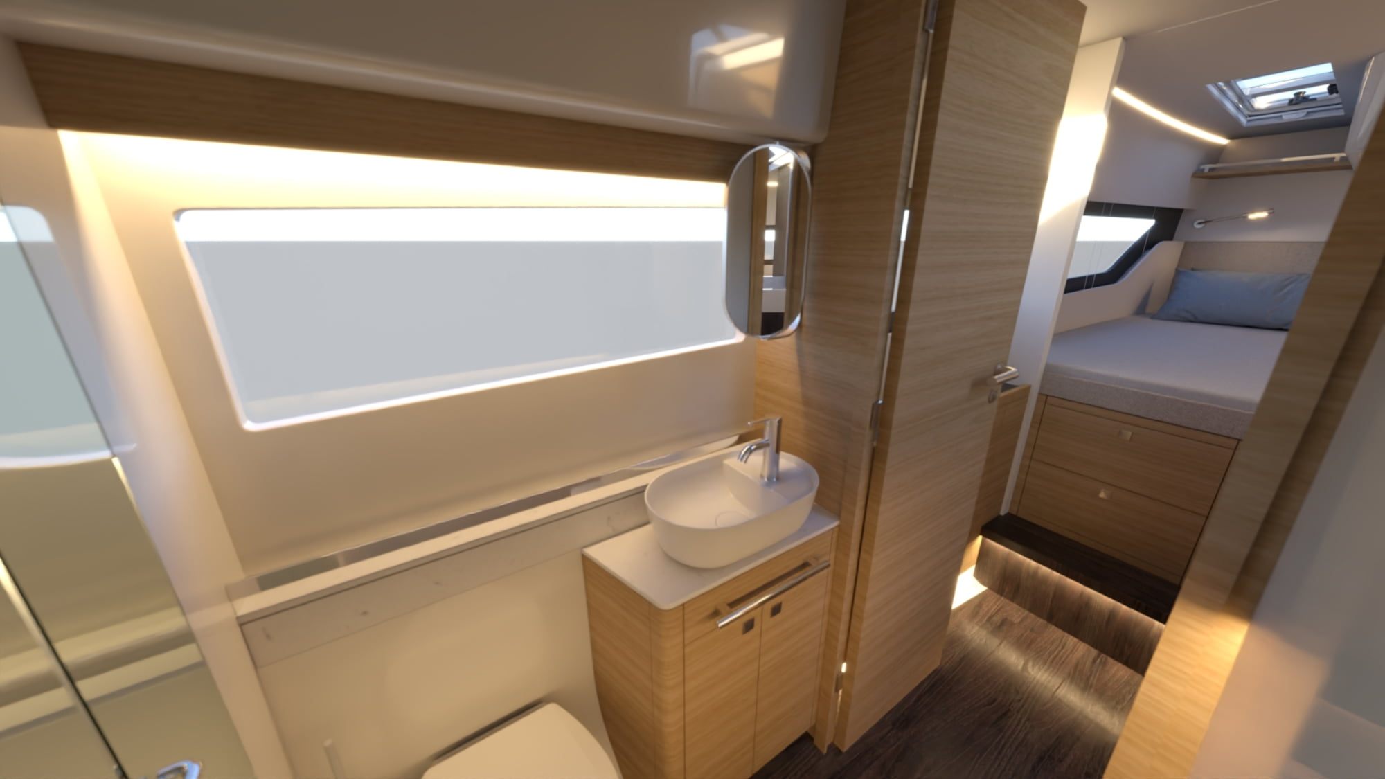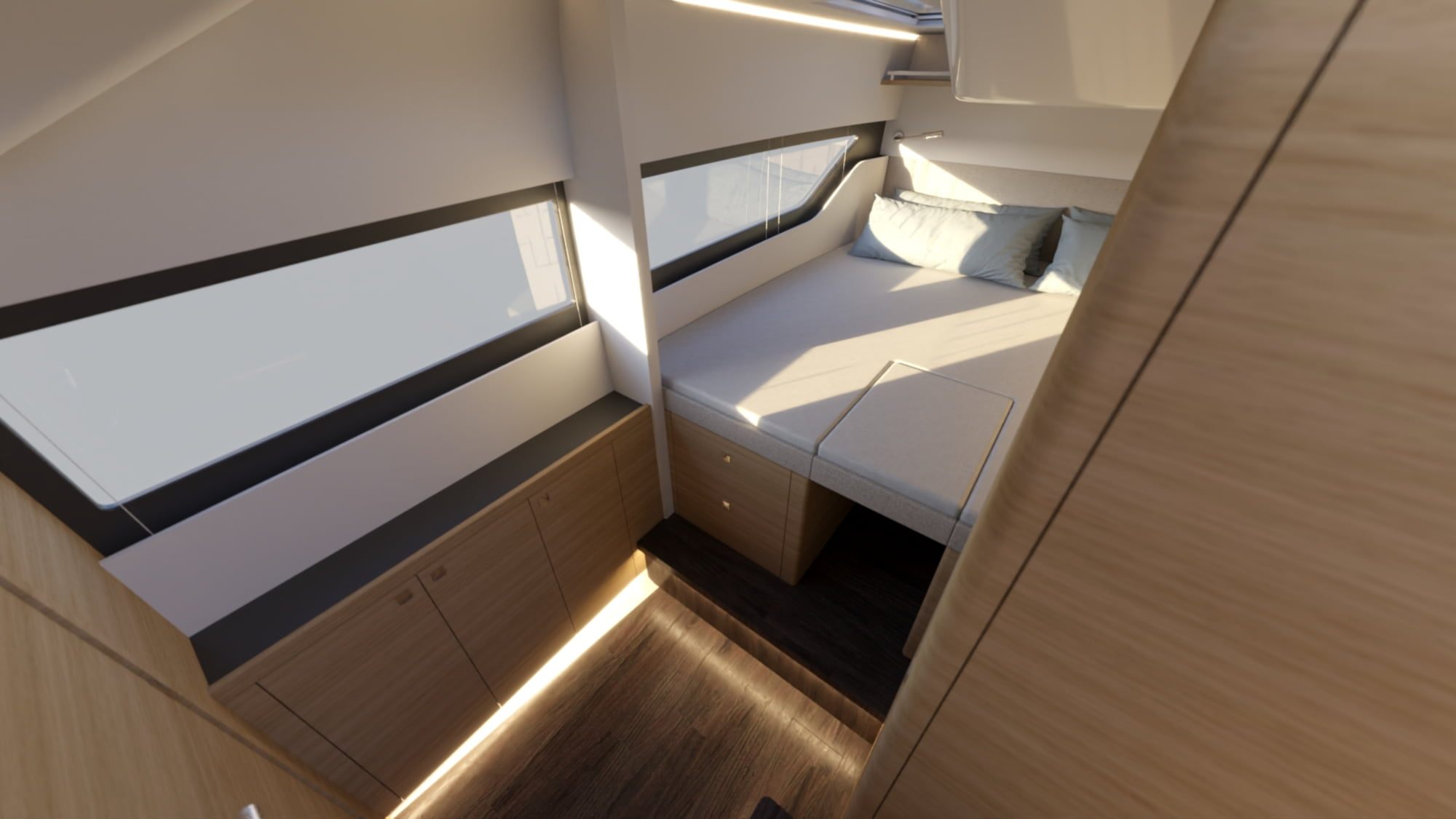This compact soon to be launched powercat, features a sober design characterized by a semi-suspended T-Top – so that, in fine weather, it’s somewhere between an Open and a Cabin Cruiser. This perfect weekender, designed in collaboration with Dixon Yacht Design, offers excellent handling qualities, top-level performance, and genuine comfort both at anchor and underway.