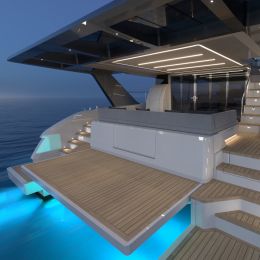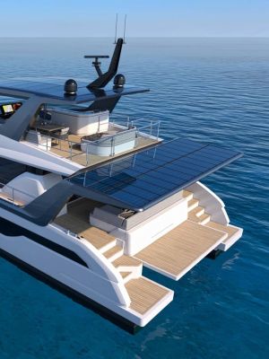 by Xquisite Yachts and Dixon Yacht Design, offers silent, emission-free cruising with its innovative hybrid system, allowing for extended time at sea and significant fuel savings.