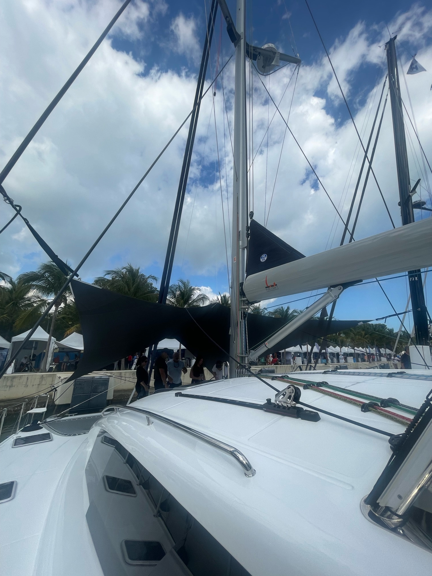 Especially impressive was the fact the boat sailed this well with no less than 10 people aboard, plus a large German Shepherd. The boat was also chock full of stores for cruising, due to the owners and a delivery skipper having just provisioned and sailed it offshore to Annapolis from Fort Lauderdale. Apparently, they’d had to press on close-hauled in gale conditions much of the time and had barely met their docking deadline for the recent boat show. Nonetheless, the crew (and dog) had all still managed to arrive safe and happy.