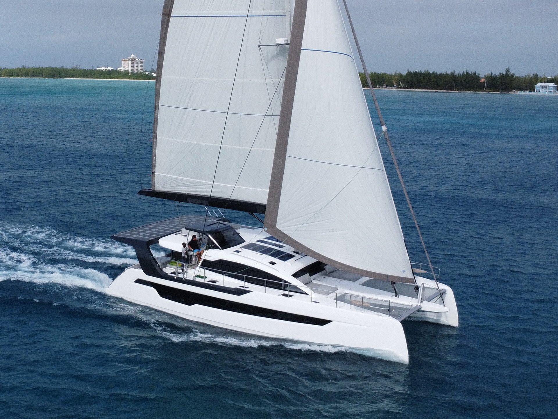 Packed with solar panels and lithium batteries, powered by a hybrid system that incorporates diesel engines and electric drive/power generators, and fitted out with a versatile and powerful sail plan, the Xquisite SIXTY SOLAR SAIL catamaran is intended to be a long-range cruiser that a self-reliant couple can handle on their own and liveaboard for extended periods.