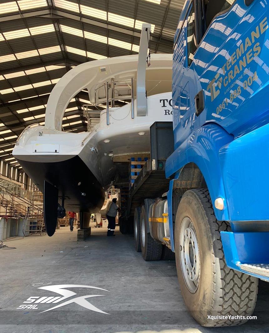 Xquisite X5-011 is loaded onto the truck to be delivered to the harbor where she will be launching tomorrow.